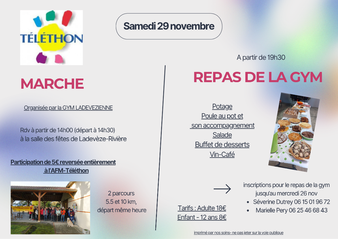 Accueil > Actualités > ASSOCIATION > Marche et repas proposés par la Gym Volontaire - Samedi 29 novembre Marche et repas proposés par la Gym Volontaire - Samedi 29 novembre 19 novembre 2025